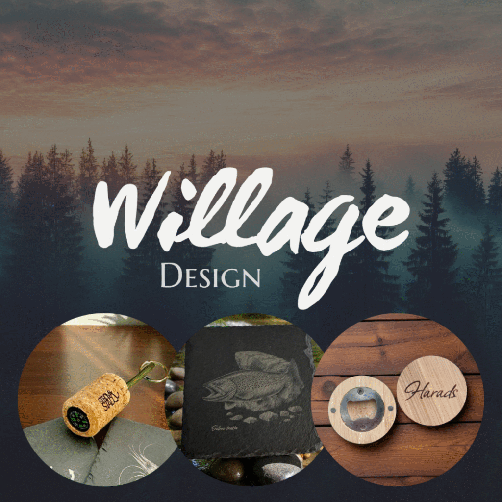 Bäckö Village erbjuder ett brett sortiment – från paraplyer och vandringskäppar till anpassade produkter i skiffer, magneter och nyckelringar.